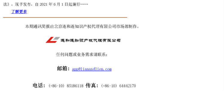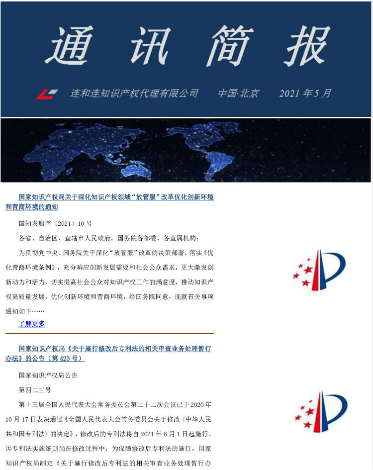 北京连和连知识产权代理有限公司2021年第5期【通讯简报】