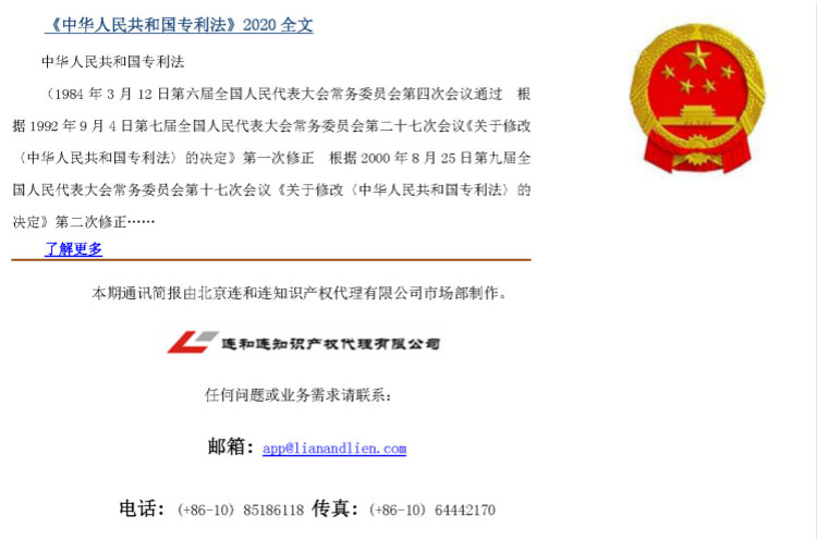 北京连和连知识产权代理有限公司2021年第6期【通讯简报】