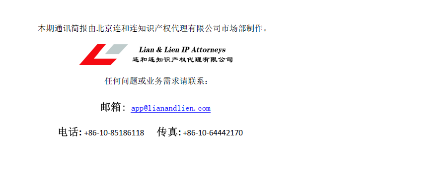 北京连和连知识产权代理有限公司2026年第1期【通讯简报】