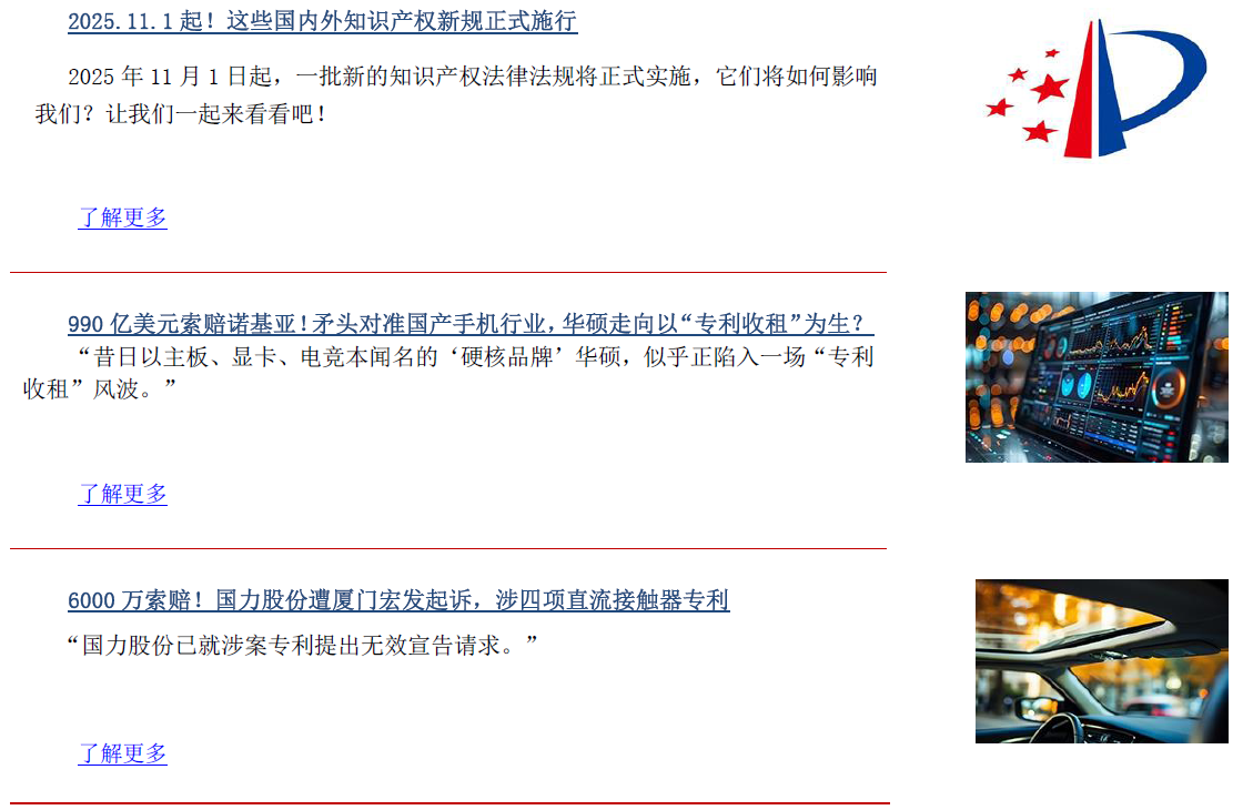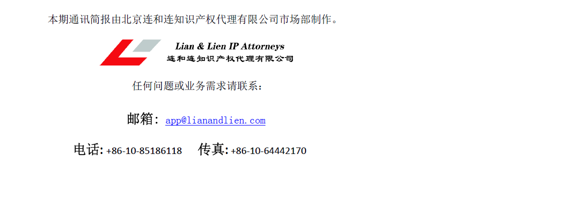 北京连和连知识产权代理有限公司2025年第11期【通讯简报】
