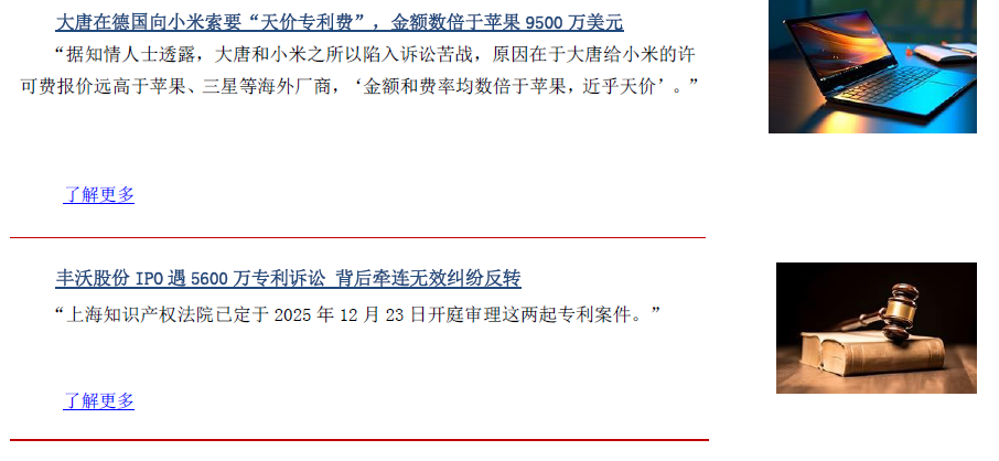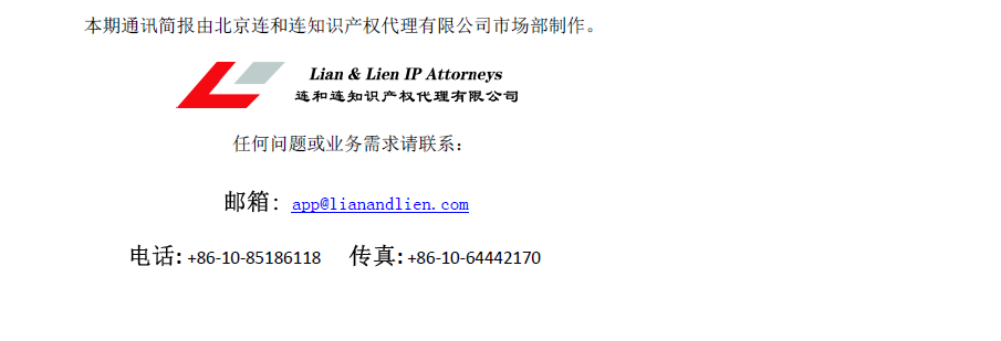 北京连和连知识产权代理有限公司2025年第12期【通讯简报】